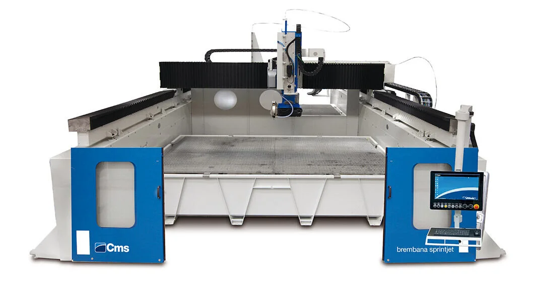 brembana sprint jet is a Numerically Controlled 5 interpolated-axis bridge saw equipped with tilting head and fixed table. It can carry out any type of machining, cutting (straight or shaped, vertical or inclined), 3D profiling and milling operations, on marble, granite, composite stone, and ceramic as well as stone blocks.